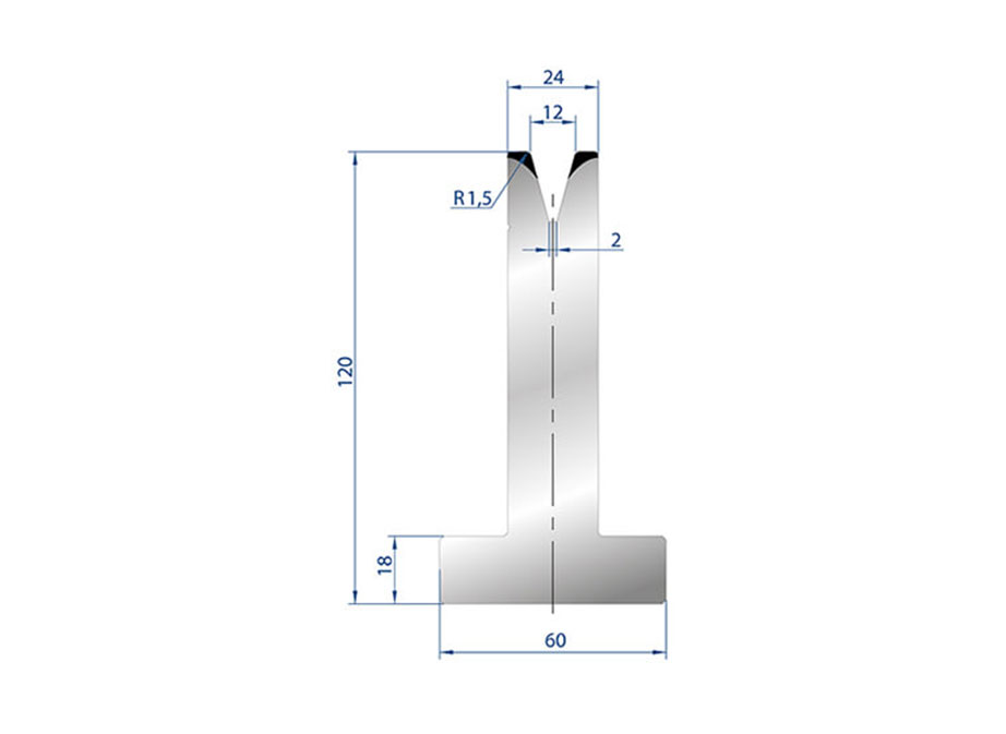120 H yüksekliği ve 12 mm V açıklığı, farklı sac kalınlık ve şekillerine uygun esnek büküm imkânı sağlar. Maksimum 40 Ton/metre basınç kapasitesi ile orta ve hafif hassasiyet gerektiren uygulamalarda güvenli ve stabil büküm sağlar.